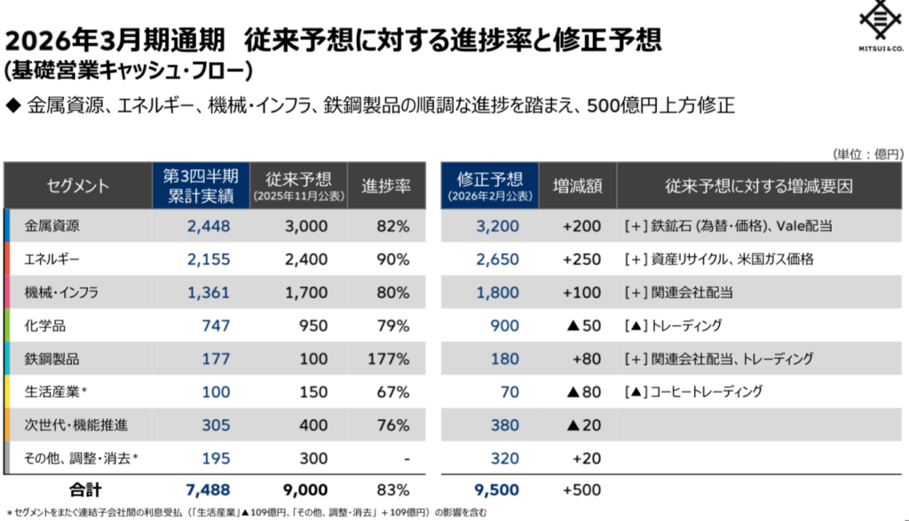 【総合商社】26年3月期第3四半期決算分析速報①三井物産